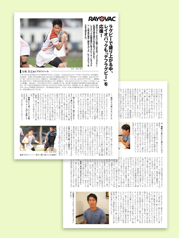専門誌への記事広告作成。スポーツと絡めた企画を考えて欲しいと言う事で、ラグビーワールドカップという事もあり、難聴者で行われるデフラグビー大塚選手へのインタビューを企画。選手とのセッティング、書きおこし、撮影、記事制作をまとめて行いました。大塚選手は素晴らしい努力とパワーの持ち主でした!