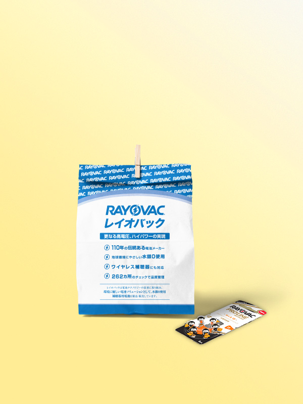 電池を購入してくださったお客様用に商品を梱包する紙袋。紙袋デザイン、製造工場探し、入稿、ご依頼会社様倉庫までの納品を一括で行いました。単色で通常の印刷方法ではなかったため、写真を使用すると荒くなってしまうのでテキストのみにして、ブランドをアピールする作りにしました。